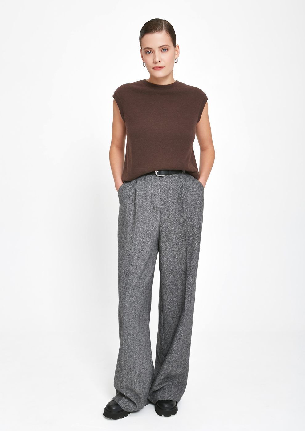 Шила из шерстяной фланели, стрелки хорошо заутюжились и вытягивают силуэт. Длину укоротила на 5 см, так не ношу обувь на каблуках. Если оставить оригинальную длину, ноги будут просто бесконечными😊