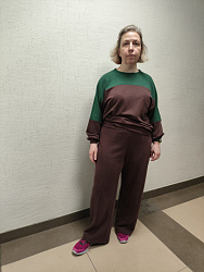 Брюки отличные, отдельный кайф - цельнокроенный пояс, это очень здорово, меньше утолщений в талии, меньше слоев, шьется легче. Модель достаточно широкая, но вот с длинной почему - то у меня получилось впритык, возможно потому что у меня талия высокая, шила вместе со свитшотом Mara, получился отличный костюм.