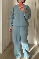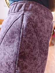 Ткань футер с начесом. Шила без корректировок, сели идеально. По низу добавила кулиски с резинками.