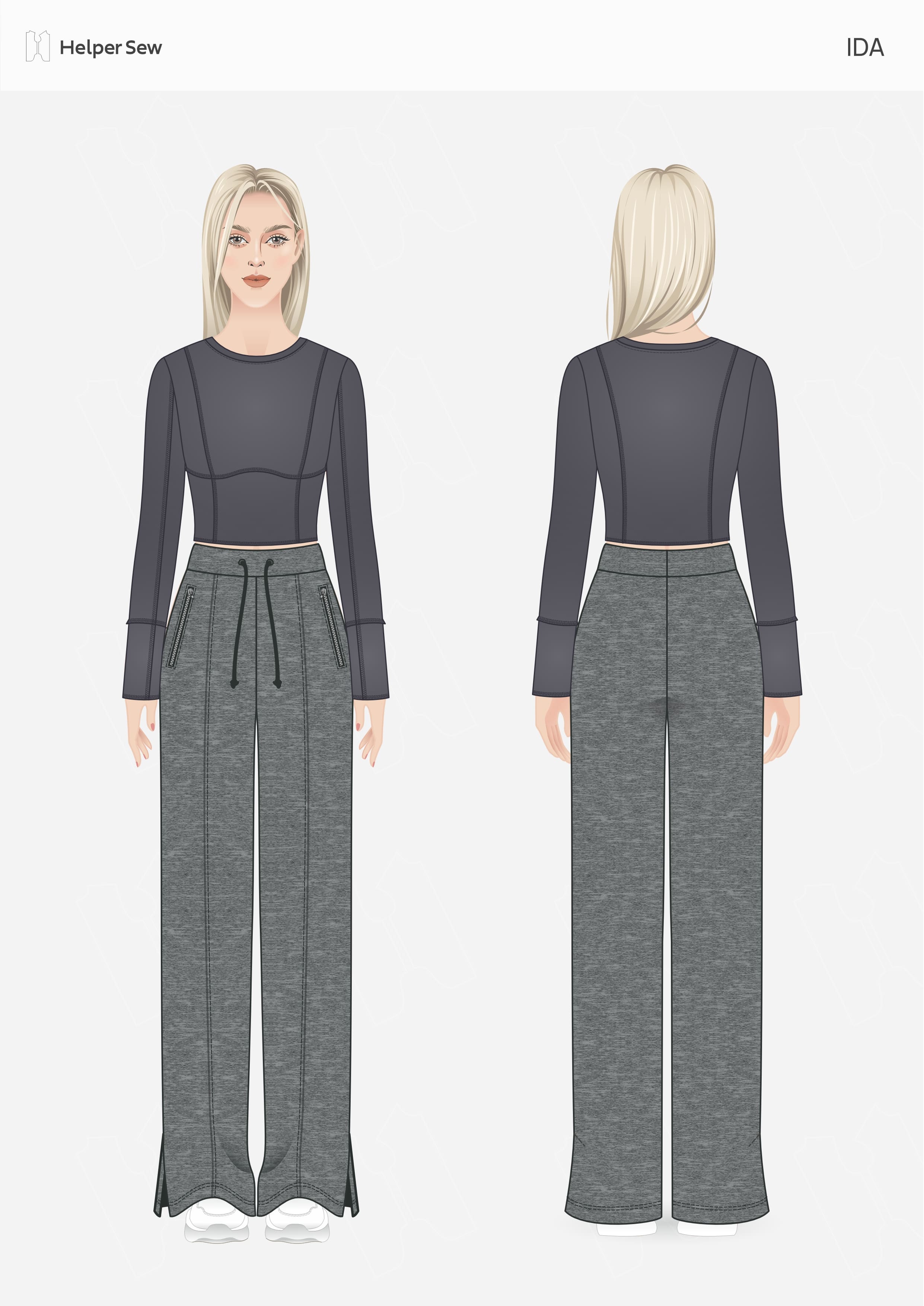 Моя первая сшитая вещь по выкройке. Как же всё легко шьется по выкройкам Helpersew! Хорошая посадка на животик. Шила из футера 3х-нитки. Планирую осенью бегать в них. Отдельное спасибо за ростовую группу. Мой рост 180, всё отлично подходит.