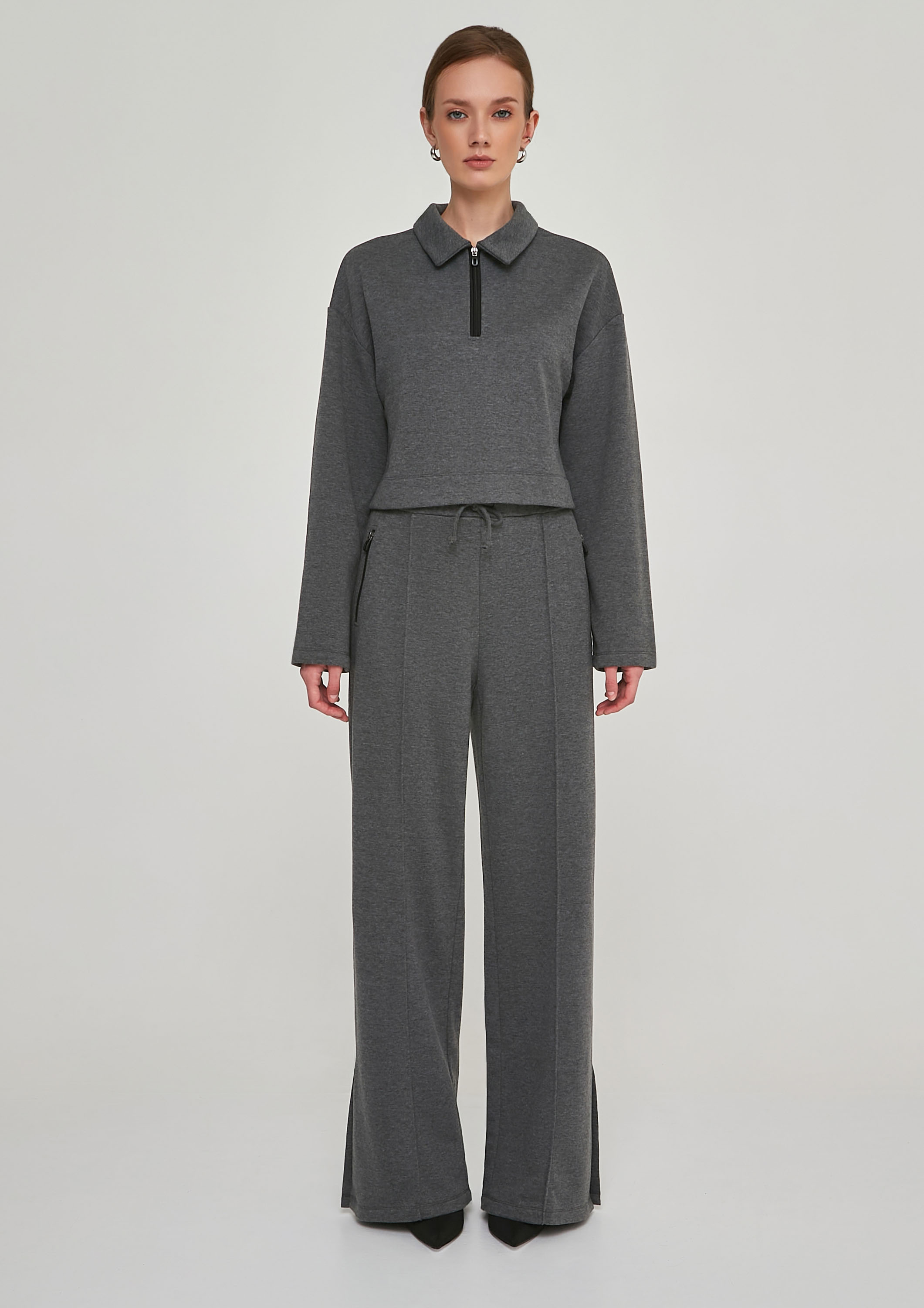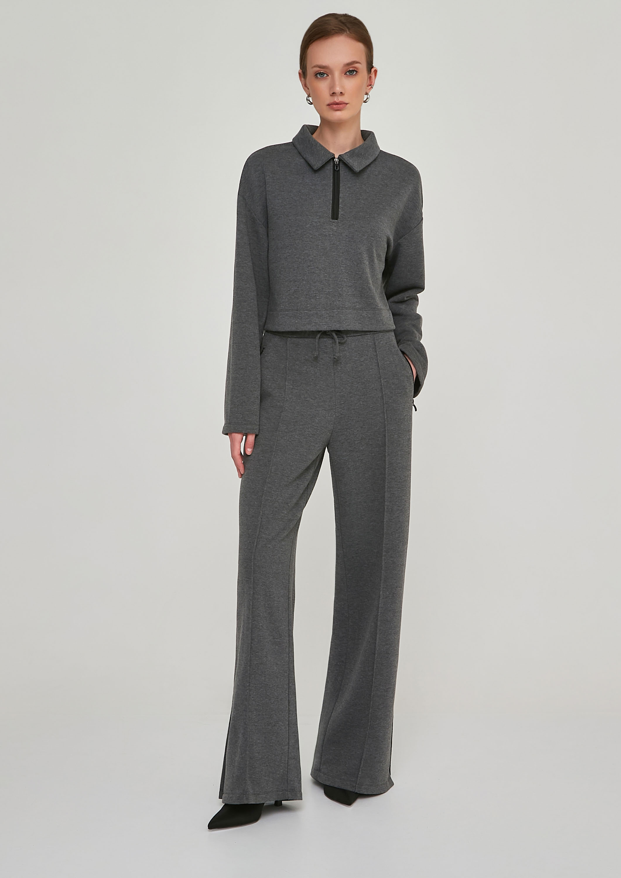 Очень классные и комфортные брюки, но по этом не выглядят супер спортивно. Шила их вместе со свитшотом из одной коллекции.