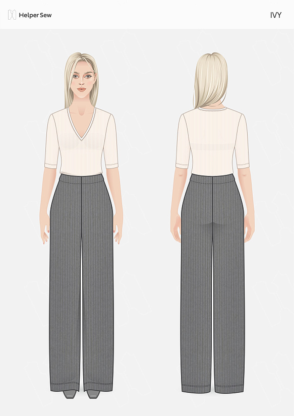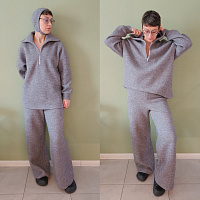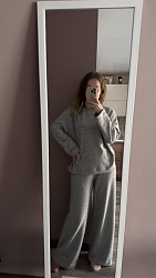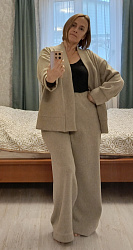 Брюки шьются за час. Идеальная модель, села шикарно. Сшила уже из двух тканей: трикотажа с ворсом (как костюм с лонгом от HelperSew Alisa) и для дома из трикотажа в рубчик. Изменила высоту сидения (уменьшила на 4 см) и укоротила штанины прилично так, см на 12. А так, мне кажется, это любимая моя модель брюк теперь и для дома, и как повседневка.