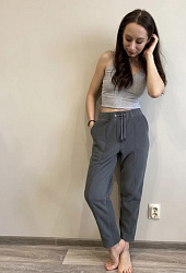 Брюки получились потрясающие! Я теперь готова носить их, не снимая! Сели прекрасно, очень в них удобно. Шила из костюмного твила, шнурок не делала.