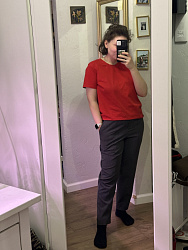 Выкройка понравилась. Шила для мамы. Она не любит широкие брюки. Шила из толстого футера с начесом, поэтому были сложности с кокеткой. Изменений не вносила. Хочу к зиме и себе такие сшить.