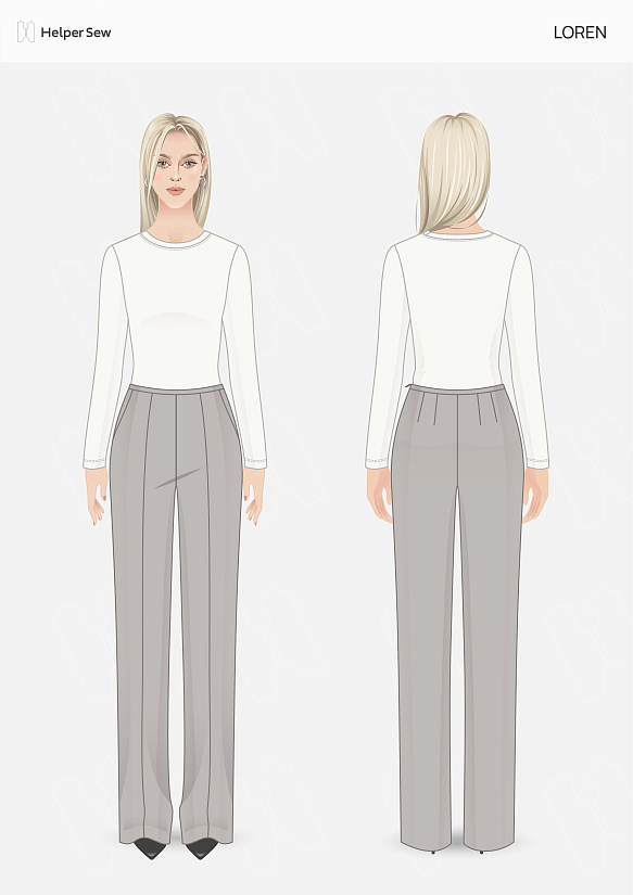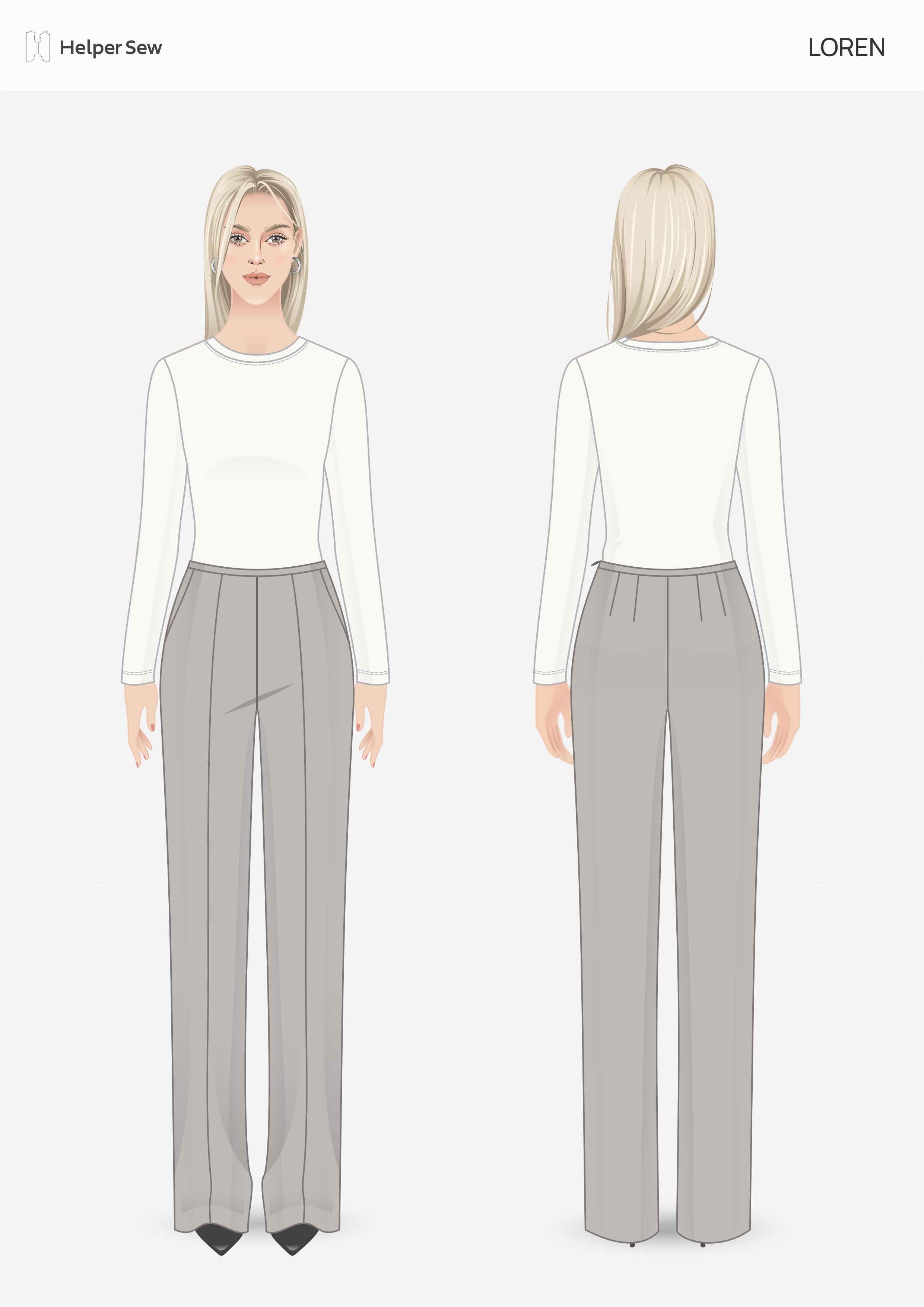 Когда покупала выкройку, то не прочитала описание к ней. Была уверена, что впереди идут стрелки (почему-то увидела их на тех рисунке). И уже распечатав выкройку, поняла, что это не стрелки, а рельефные швы. Размер выбирала по обхвату бедер. Посадка у брюк высокая. Из корректировок я расширила талию, т. к. она не соответствует моим параметрам. В целом брюки получились неплохие. Но мое изделие совсем не похоже на то, что я увидела на тех рисунке. Хотя шила по выкройкам хелперов и другие изделия, всегда реальность соответствовала ожиданиям.