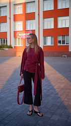 Не понимаю почему, но в этих брюках мне совершенно неудобно сидеть. Шила их из костюмки без эластана.