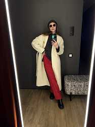 Хорошие брюки получились по посадке. Когда буду шить в следующий раз - добавлю длину. С ботинками хорошо, а вот с туфлями нужно либо еще короче, чтобы открыть щиколотку, либо длиннее, чтобы была полноценная длина. Шила из красного тонкого вельвета. Инструкция как всегда кайф. Сложностей не возникло. Все узлы предельно понятные.