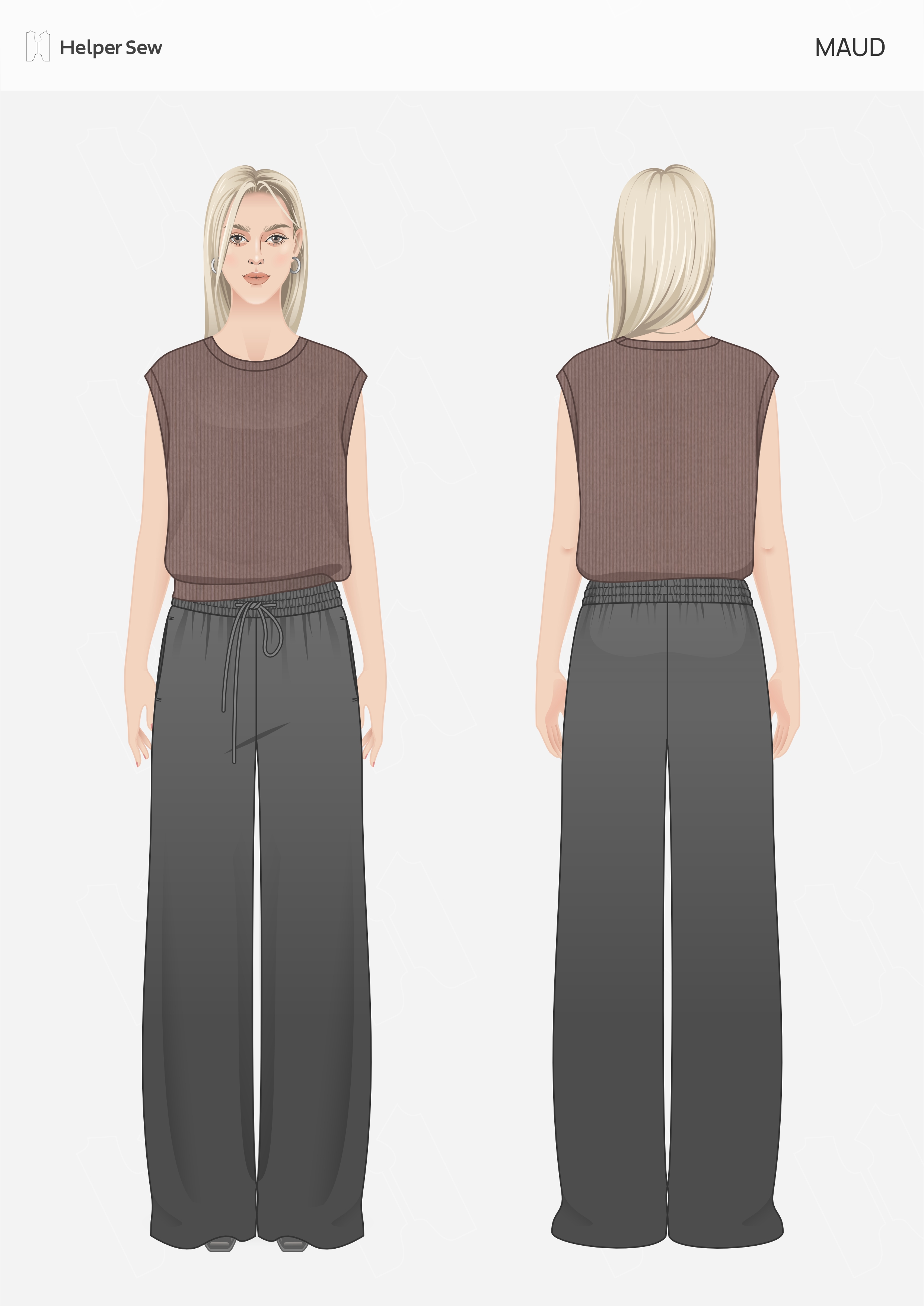 Отличная выкройка, корректировок ноль, даже по длине точно по выкройке. Шьется легко (от себя добавила застроченные стрелки, удобно на интенсивную повседневную носку). Сама модель универсальная, и в отпуске гулять и в офис в пятницу отлично. Спасибо за отличную выкройку!