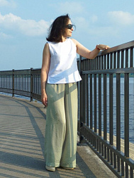 Выкройка понравилась - сшила 2 пары брюк: из тонкой костюмной ткани и из "мокрого шелка" (на лето). Брюки удобные и красивые, легкие в пошиве.
