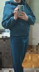 Описание понятное. Выкройка по моим замерам, села идеально. Пару см длины сделаю в следующий раз, как будто коротковато, но не критично. Может, кажется. Шила в комплект к худи, оно тоже есть на этом сайте.