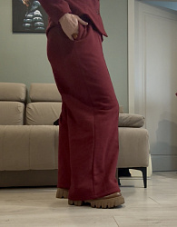 Спасибо, что поделились опытом. По вашему описанию сложно определить причину — для понимания посадки нам очень нужны фото примерки, без них мы не сможем корректно прокомментировать ситуацию. Модель этих брюк изначально рассчитана на посадку на резинке — при разнице между вашим фактическим обхватом талии и таблицей размеров изделие действительно может давать излишнюю свободу по линии талии. Если сможете, пришлите, пожалуйста, фото примерки — так мы точнее разберёмся, что происходит именно в вашем случае.
