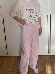 Отличная выкройка пижамных брюк. Шьются очень быстро. Так как они пижамные, то по выкройке мне показались брюки короткие, я прибавила длины 10 см и не пожалела. Мне так комфортнее.