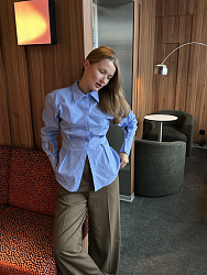 Шьются на одном дыхании. Карманы прекрасно глубокие. Стрелки вытягивают силуэт. Пояс сзади на резинке - отличная фишечка. Комфортно очень в талии и не давит нигде. Буду на всех брюках такой пояс делать.