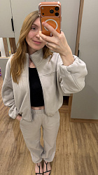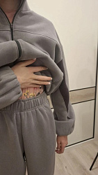 Брюки на очень высокой посадке, для зимы это прекрасно. И носить пояс либо чуть выше талии, либо спускать ниже, но тогда будет «мотня». Но в целом очень комфортная посадка.