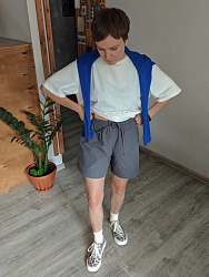 Шила по выкройке брюк шорты. Длину отмечала на примерке.