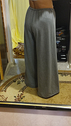 Эти брюки мне очень понравились в каталоге выкроек на модели. Подобрала к этому фасону летящую и пластичную, но держащую форму ткань под названием палермо (по составу вискоза с нейлоном).