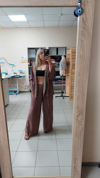 Отличные брюки и костюм в целом! На отдыхе было очень удобно и красиво. Ничего не меняла, брала свой размер.
