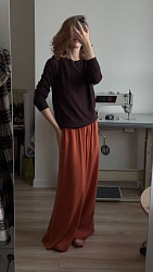 Брюки шила без измений в выкройке. Но мне не хватило длины, хотя ростовку брала свою. Следующий раз буду делать прибавку по низу.