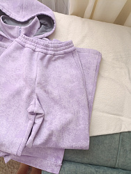 Хорошая базовая выкройка брюк -труб, взяла её как основу для интересной задумки. Выкройку немного изменила: добавила вставки - складки в боковые швы, по низу резинку-утяжку, чтобы можно было носить брючины в двух вариантах, талию подняла на 1 см, пояс сделала из кашкорсе. Костюм со свитшотом Sally из трехниточного петельного футера.