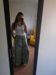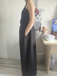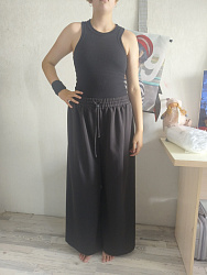 Так как материал использовала впервые, получилось не идеально, но в целом я осталась довольна. Для прогулок идеально, как в пижамке) Уже, наверное, десяток выкроек с этого сайта и ни разу не корректировала, всегда идеально садиться. Брюки получились очень свободные. Один нюанс: на мой рост они были длинные, но недостаточно для обуви на платформе, поэтому я решила чуть больше подогнуть для обуви повседневной. (Ничего не обрезала, но подогнула чуть больше рекомендуемого).