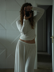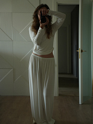 Широкие, просторные брючки, но я как новичок шила из очень плотного льна, для этой модели нужно брать легкие ткани. Сам процесс и результат приятно удивил)