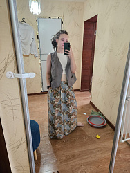 Я побоялась значительной прибавки к обхвату бёдер и взяла 40 размер вместо 44. Не проверила длину детали пояса и поэтому не влетаю в брюки, а натягиваю))