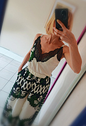 Шила из вискозы, получились идеальные брюки на жару, с кимоно выглядит шикарно! Точно сошью ещё несколько из разных материалов, сшила уже двое из разных цветов вискозы.