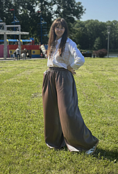 Легкие широкие брюки. То что нужно. Ничего не меняла, добавила строчку на талии-резинке.
