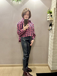 Эти брюки сшиты из кожзама, но я их решила сшить из джинсы без изменений в 2022 г. Но сейчас, думаю, надо было на пару сантиметров удлинить.