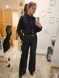 Прекрасная выкройка, прекрасные джинсы. Немного убрала длину, и все равно осталось место для каблука. По низу подшила потайными стежками. На фото в комплекте с рубашкой Erika.
