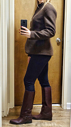 Отличная выкройка! Шьются легко и просто. Понадобилось несколько раз метать в ручную для примерки, поскольку было очень много подгонки. Возможно это связано с эластичности ткани (Коэффициент растяжение моей ткани 0,85) и особенности фигуры. Я хотела несильно плотные но обтягивающие штаны, чтобы посадка была как на картинке продавца выкройки.