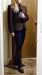 Очень понравилась модель. Немного смоделировала легкий клеш, добавила потайную молнию в боковой шов, добавила выточки по задней половинке. Шила из джерси большой плотности. Выкройка понравилась. Перед полным стачиванием делала примерку. Корректировок сильных не понадобилось (кроме выточек, это было пожелание заказчика). Делала данную модель как для костюма, так и просто брюки.