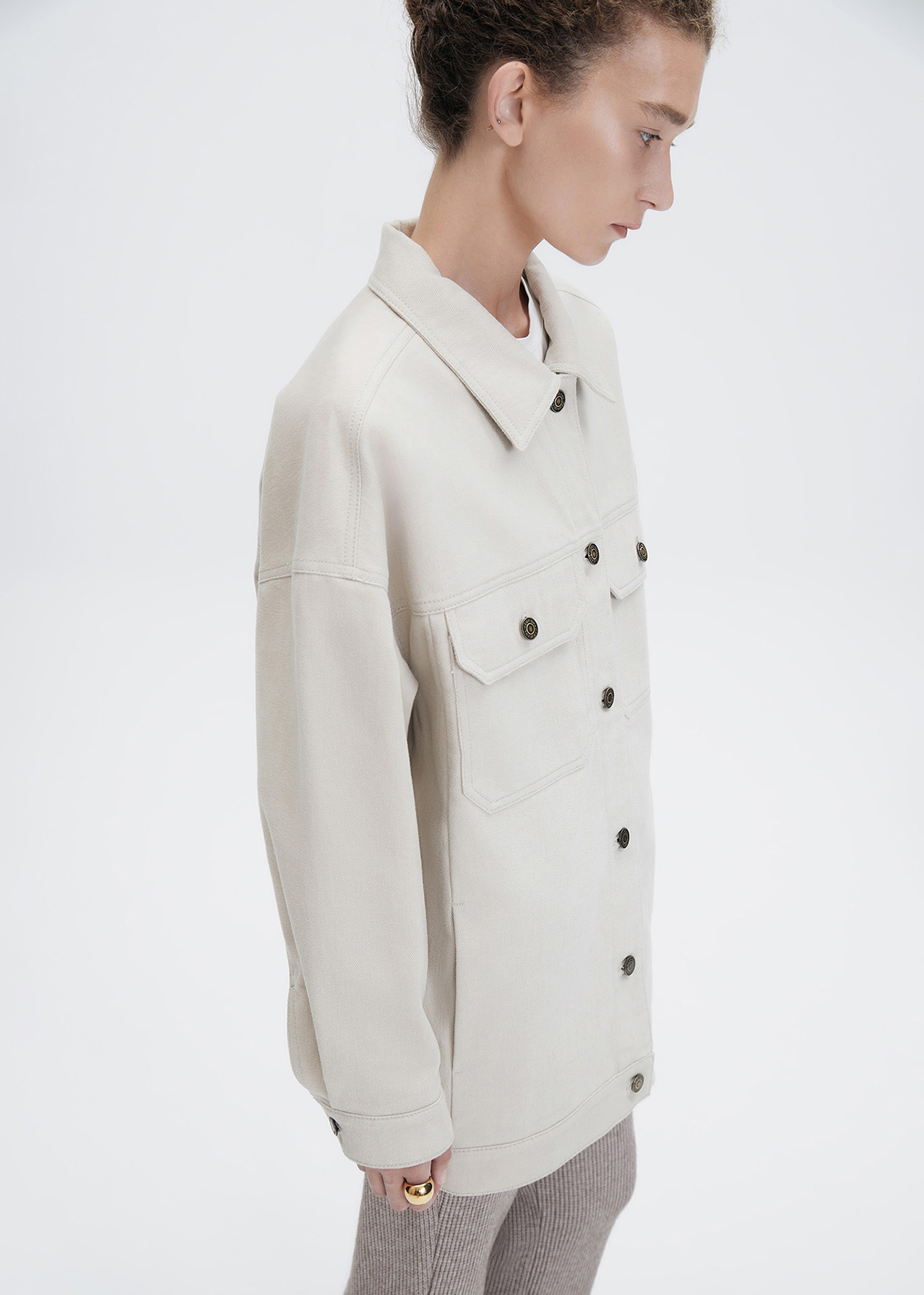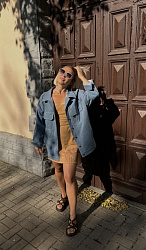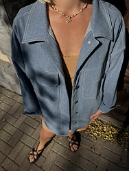 Шила из мраморного денима, так как он даёт усадку после стирки, надо было длину рукава прибавить конечно, но не критично. Длина самого изделия после стирки меня устроила.