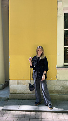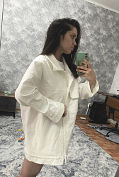 Выкройка супер! Все понятно и легко. Взяла 40 размер на свои ОТ 84, ОБ 94, рост 160. Не хотела сильно овер. И вышло то, что надо! То, что и планировала. Единственное, рукава коротки, но я их закатываю. Материал - джинс велюровый. Любовь с первой строчки.