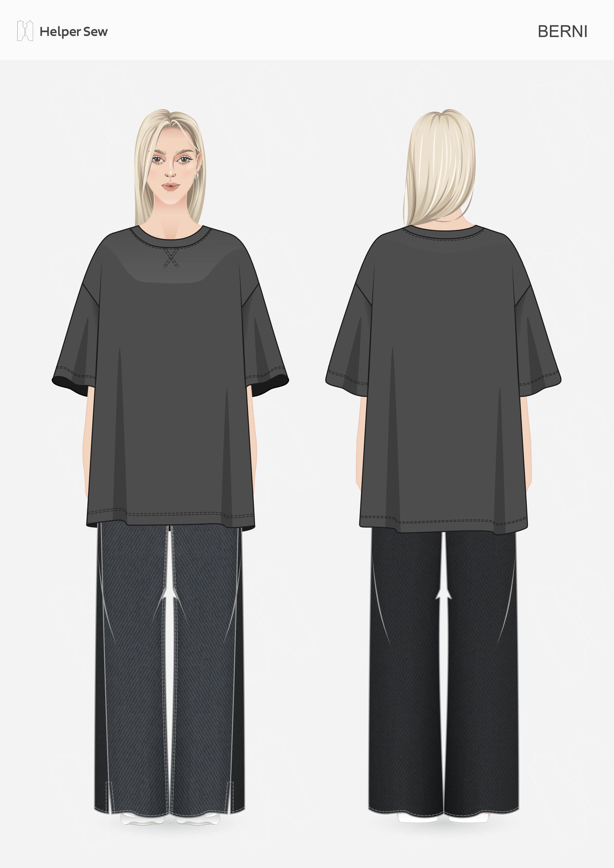 Любимая выкройка футболки! Сшила по ней, наверное, футболок 5. Если хочется удлиненную футболку, то это идеальный вариант. Умеренно длинная и объем, хоть и оверсайз, но без перебора. Прям рекомендую!!
