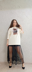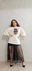 Футболка большого объёма, но в этом и её прелесть. Я уже шила по этой выкройке футболку в оригинальной длине и футболку-платье, из кулирки получается отлично, современно.
