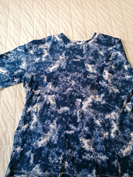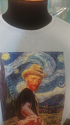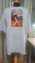 Очень простая выкройка. Удлиняла сантиметров на 7. Но это совсем не обязательно. Шила из плотной 100%-й хлопковой кулирки небесно-голубого цвета. Пришила нашивку с Ван Гогом). Вещь смотрится по-летнему. Можно и с леггинсами, и с велосипедками. Если удлинить, как сделала я, можно носить в качестве платья. Особенно беспроигрышный вариант для отдыха.