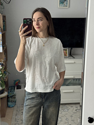 Выкройка хорошая, очень простая в исполнении. Сшилась футболка буквально за час. Единственное - нужно было выбрать размер побольше, думала, будет прям оверсайз. Но в целом, как повседневный вариант имеет место быть. Сделаю по этой выкройке еще пару футболок.