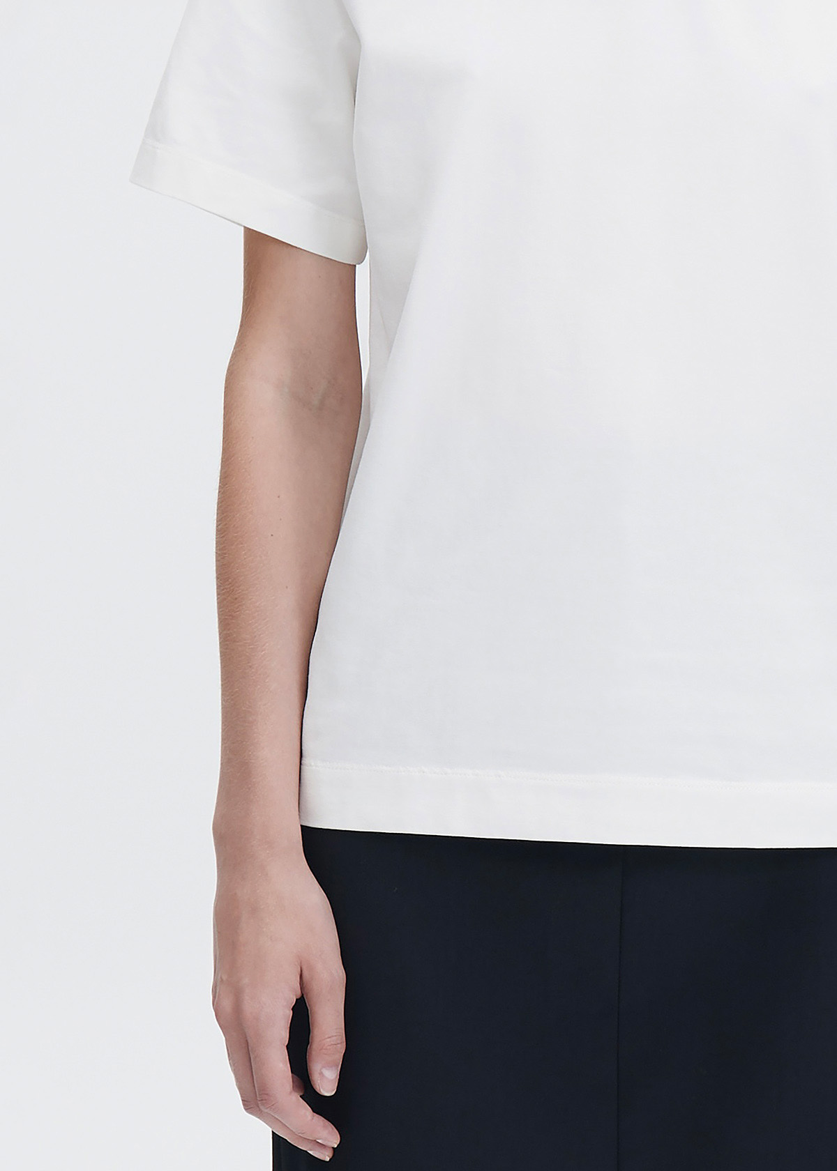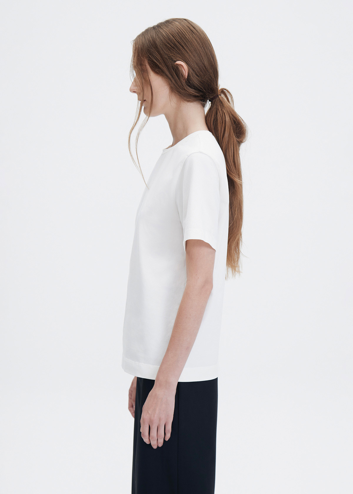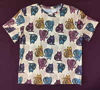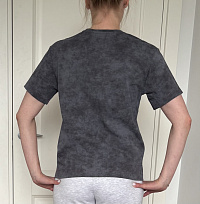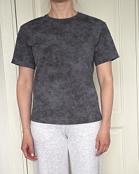Правильная базовая футболка с хорошим объемом. Сидит идеально. Шьется быстро и легко за счет понятной и подробной инструкции. Обрабатывать низ изделия и рукавов не стала, нравится эффект закрученной ткани, у меня кулирная гладь. Спасибо за выкройку!
