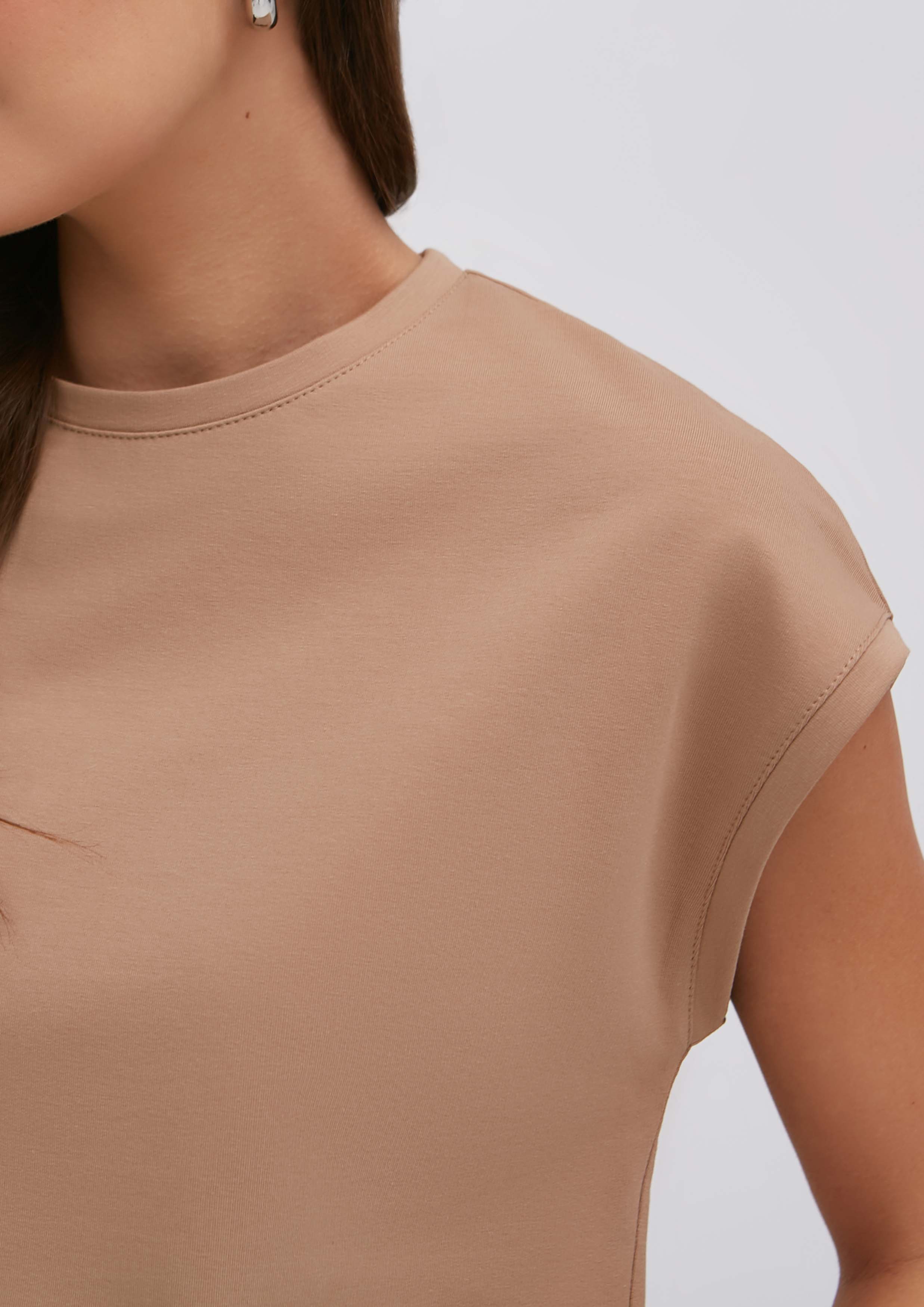 Шила из плотной кулирки. Все вроде идеально, но есть один нюанс: через пройму можно увидеть все, что под футболкой. Убавлять не стала)))))