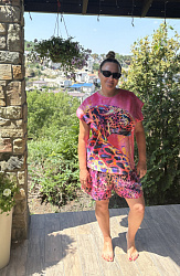 Шила дочери футболку из вискозного трикотажа в комплекте с шортами Лора. Великолепно! Спасибо, девочки, за ваши выкройки и ваш труд!