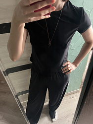 Первый раз в жизни шила футболку, и она получилась так как я себе ее и представляла, очень долго не могла решится сшить из трикотажа, так как не до конца могу понять свой оверлок и его настройки, этот вариант получился пробным, но сел хорошо, горловина получилась на удивление прекрасной, а вот боковые швы что-то пошло не так, буду однозначно шить ещё, возможно внесу корректировки по длине, и прикуплю ещё один размерчик, сошью подругам и мамуле с сестрой🤪