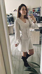 3. Верхнюю пуговицу хотелось бы повыше, чтобы носить ее как первый слой. Сейчас одеваю под него кроп-топ, вырез для меня глубоковат)).