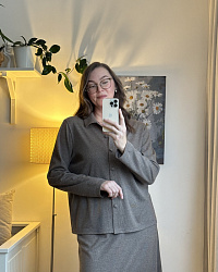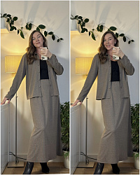 Простой кардиган, простая выкройка, просто шьётся. Когда хочется здесь, сейчас и без заморочек 😅 Ничего не меняла в выкройке, только пуговиц сделала на одну больше. Всё! Размер брала по ОГ. Юбку сшила в дополнение. Получился расслабленный, комфортный костюм 😊