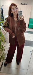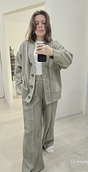 Очень понравилась выкройка!! Сшила в комплекте с брюками. Судя по комментариям боялась шить ворот, но все получилось отлично👍Не стала устанавливать пуговицы.