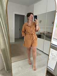 Комбинезон совпал с параметрами, сшила за день, использовала льняную ткань.
