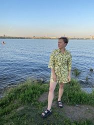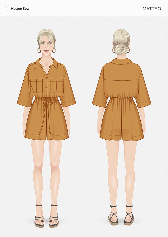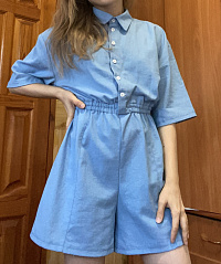 Можно разделить и сшить шорты и рубашку костюмом. По сложности почти как рубашку, может даже проще, т. к. без манжет.