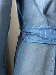 Выкройка средней сложности, но благодаря инструкции можно легко справится с воротником со стойкой и притачной планкой! Я бы посоветовала шить из более тонких тканей, изо льна, например. Я шила из плотной джинсы, получилось тоже хорошо. Единственное, мне не хватило свободы по бедрам (прибавка 10 см), поэтому берите на размер больше или корректируйте под себя.