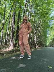 Сшила комбез из розовой джинсы. Изменила рукав, убрала пояс. Мне очень понравилась выкройка! Шьется легко!!!