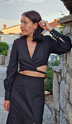 Выкройки удобные и понятные. Блузку шила из креп шифона. На лето идеальный вариант, длинный рукав, укороченная модель.